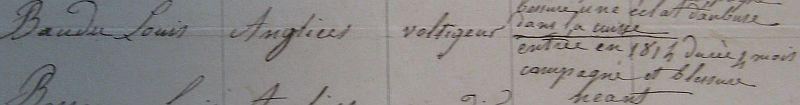 Voltigeur. Entré en 1814 pour une durée de 4 mois. |