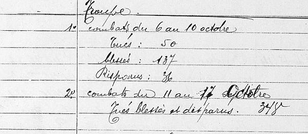 Inscrit sous le N° 3 de la liste du canton de Moncontour. Classé dans la 1ère partie de la liste en 1912. Bon absent. Incorporé (au 113e Régiment d'Infanterie) à compter du 1er Octobre 1912, arrivé au Corps le dit jour et Soldat de 2e classe. Passé dans la réserve de l'armée active le 1er Octobre 1914. Passé au 131e Régiment d'Infanterie le 20 septembre 1915. Disparu le 13 octobre 1916 au Bois de St Pierre Vaast-Bouchavesnes (Somme). Avis du ministère de la guerre n° 3547-B du 3 février 1917. Décédé le 13 octobre 1916 au Bois de St Pierre - Vaast-Bouchavesnes (Somme). Avis de décès JJ 8678 en date du 14 novembre 1919. Campagnes. En guerre contre l'Allemagne du 2 août 1914 au 13 octobre 1916. |